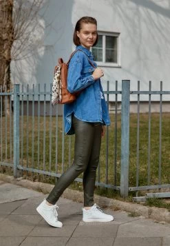Este artículo se ha fabricado con una imitación de cuero (poliuretano) que se ha fabricado mediante un proceso menos nocivo, sin disolventes químicos.